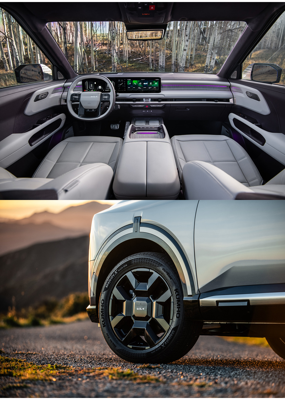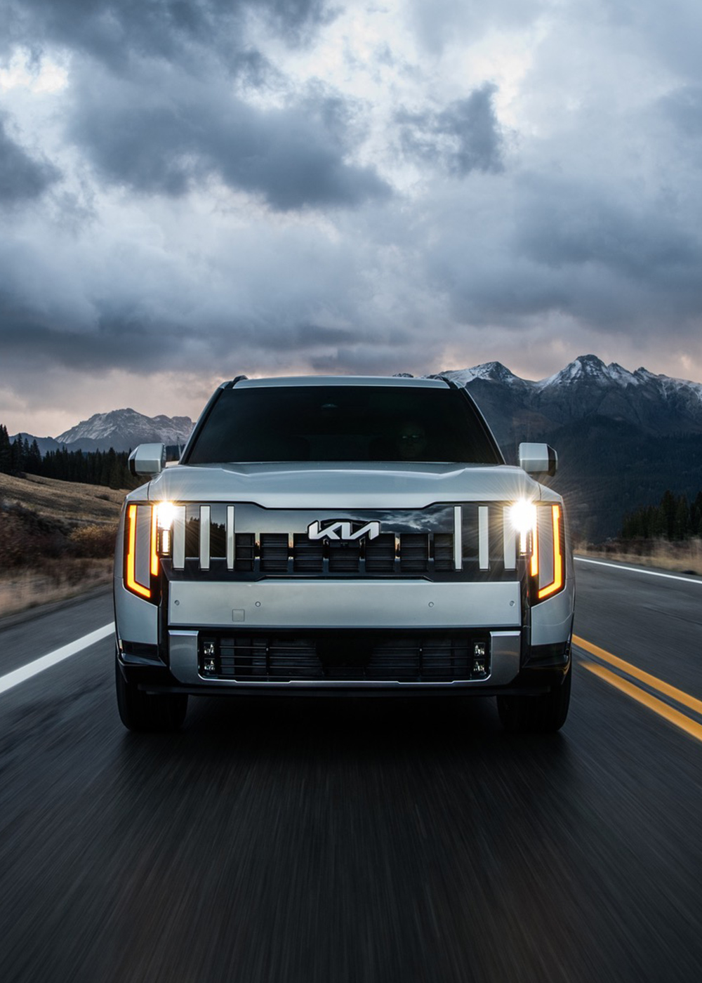 There’s a sophisticated aggression with the new Telluride. It’s bigger, sharper, and more elegant than the previous model, but it still retains a hint of utility in its design. Its vertical fender notches look as if they’re holding the wheel arches to the body, the short overhangs hint at impressive ground clearance, and the robustness of its blocky grilles adds purpose to its otherwise seductive design. Like James Bond in a tactical turtle neck, the Telluride dresses to impress, but you know it’s hiding real skill underneath. Which is exactly what Kia wanted.
