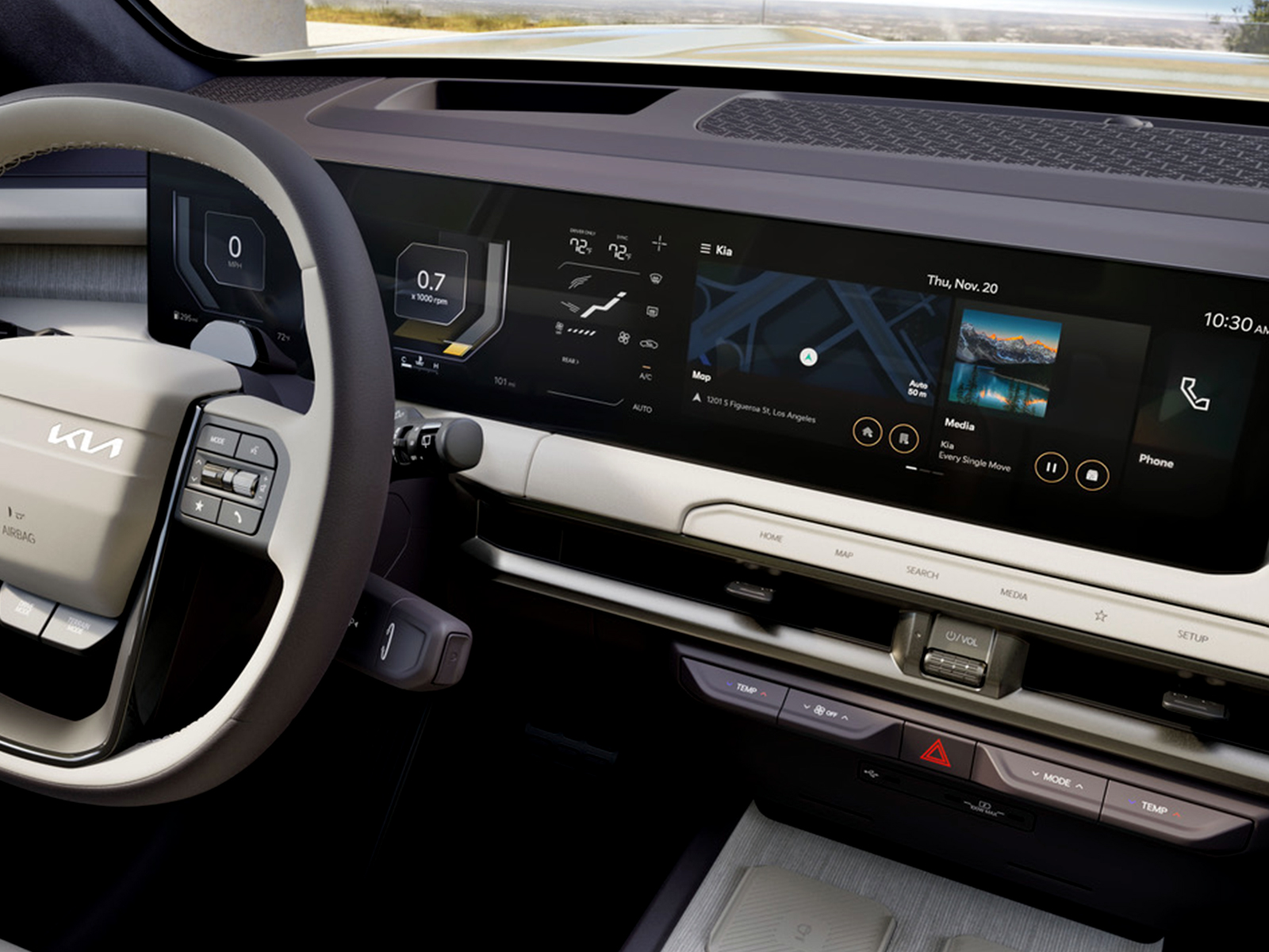 Don’t mistake the new Telluride for being a utilitarian workhorse, though. Kia built that utility into give owners peace of mind. They’ll know that from behind the wheel, they’re ready to tackle almost anything that gets in their way. Performance on the road isn’t an afterthought, either. With the Telluride’s 2.0-liter turbocharged hybrid power train, you’re not only treated to 329 horsepower, but you also get 637 miles of range. And since the Telluride Hybrid isn’t a plug-in, you’ll never have to worry about keeping its battery charged, as the engine does that for you. And is there anything more luxurious than simply having less to worry about?