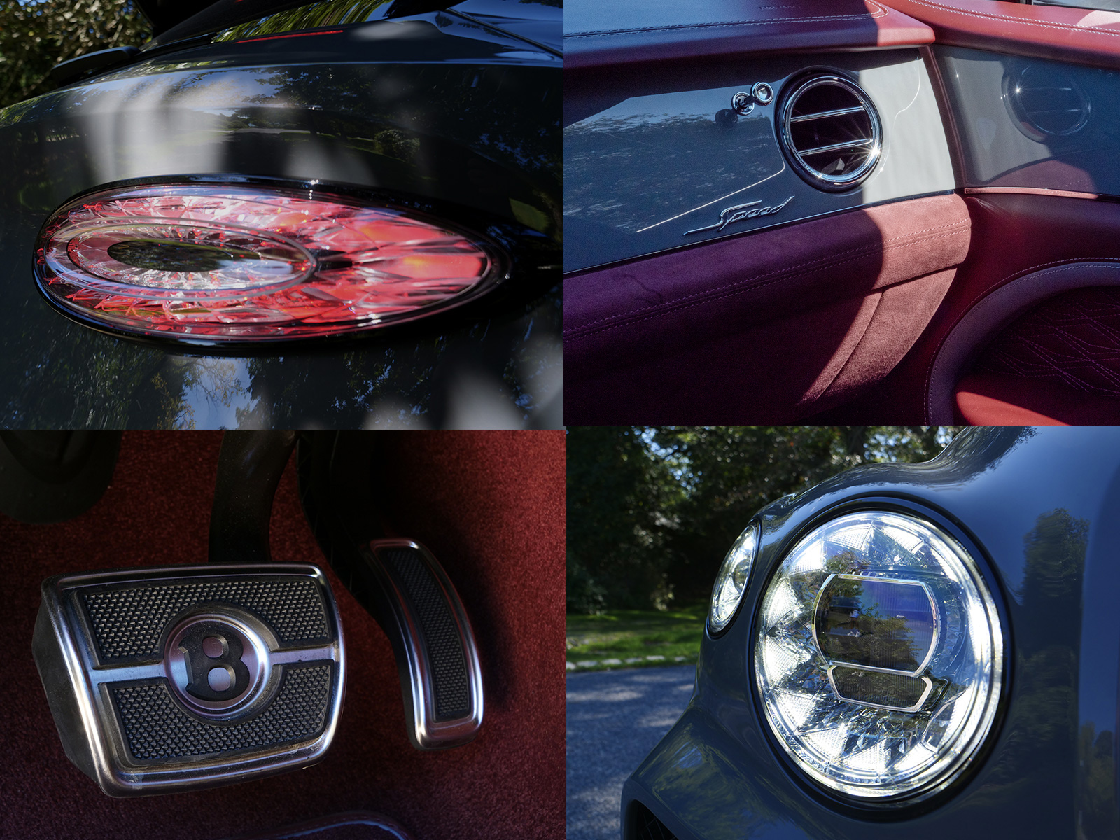Visually, the Speed announces itself through dark-tint brightware, grey tail lamps with smoked bezels, exclusive dark headlamp internals, and striking 23-inch Speed wheels. Carbon ceramic brakes are available for those seeking even sharper control, and the signature Speed badging, paired with colored brake calipers, gives the exterior a restrained sense of drama.