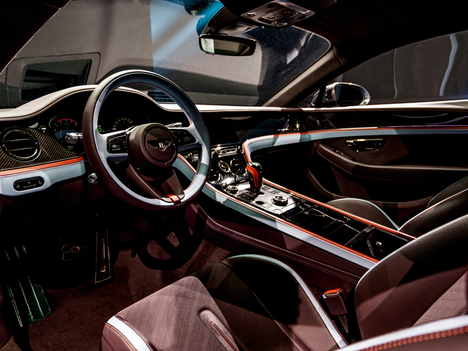 Inside, Bentley trades the traditional rear cabin for a sculptural carbon-fiber and leather shell, creating a space that feels intimate and intentional. Lower-set sports seats nestle the driver into the architecture of the car, surrounded by leather, Dinamica, and carbon fiber that frame performance through a lens of modern luxury.