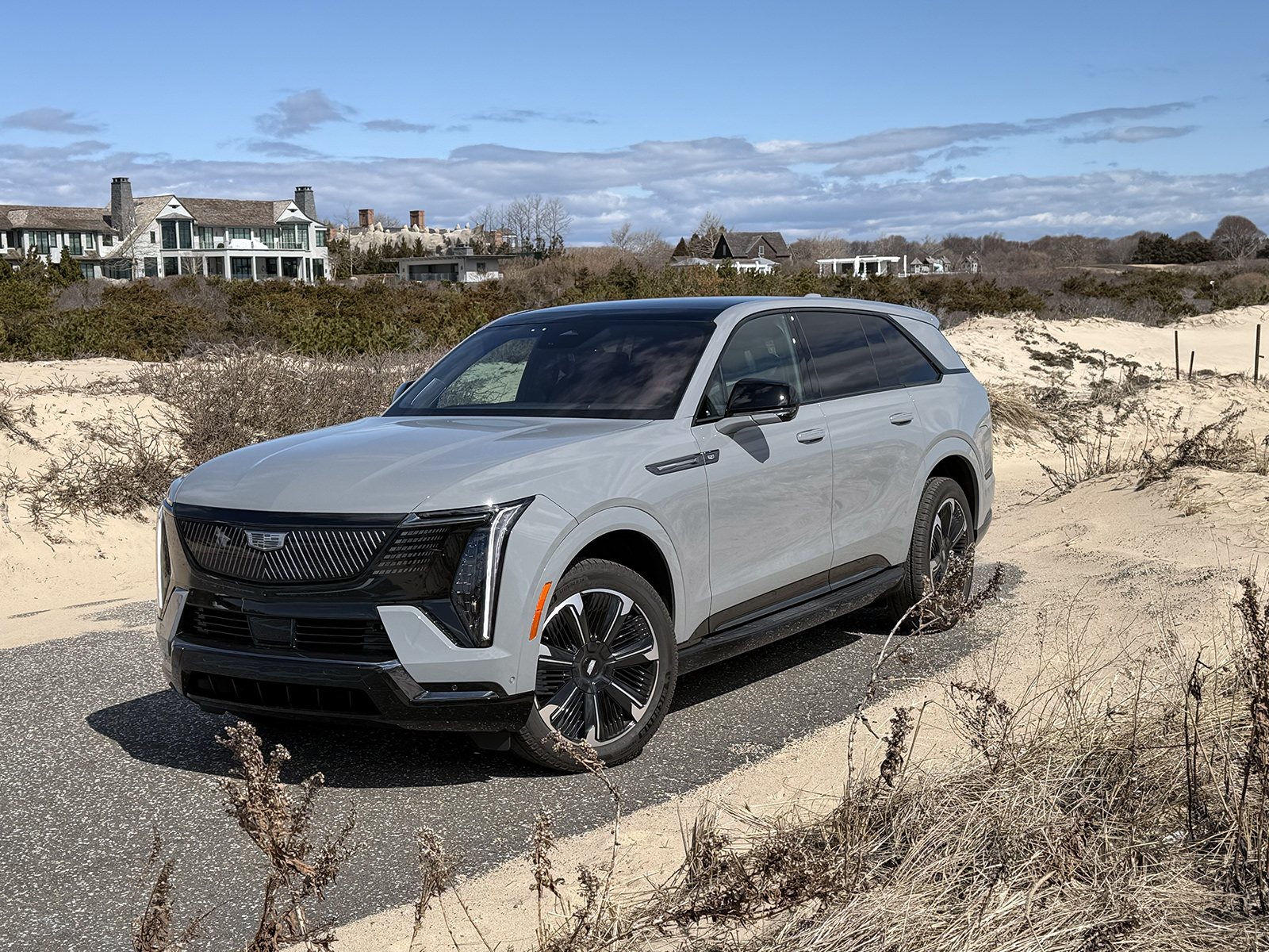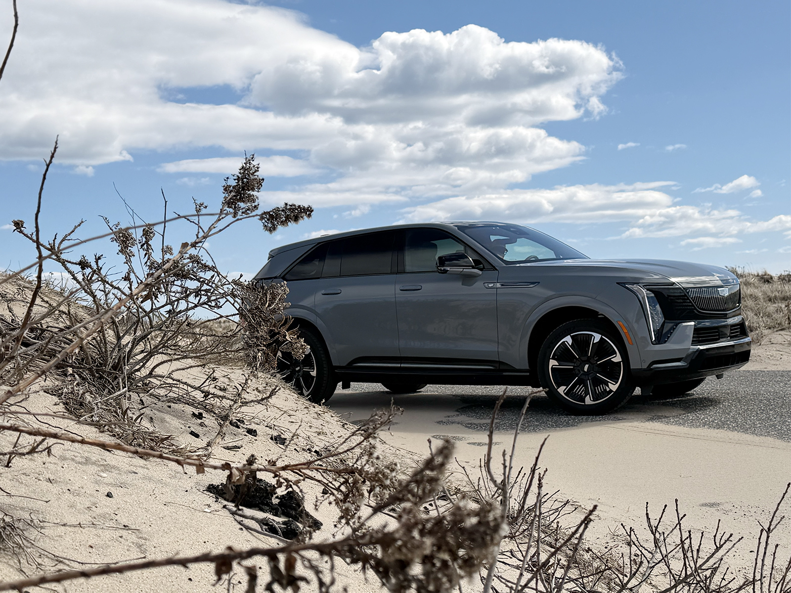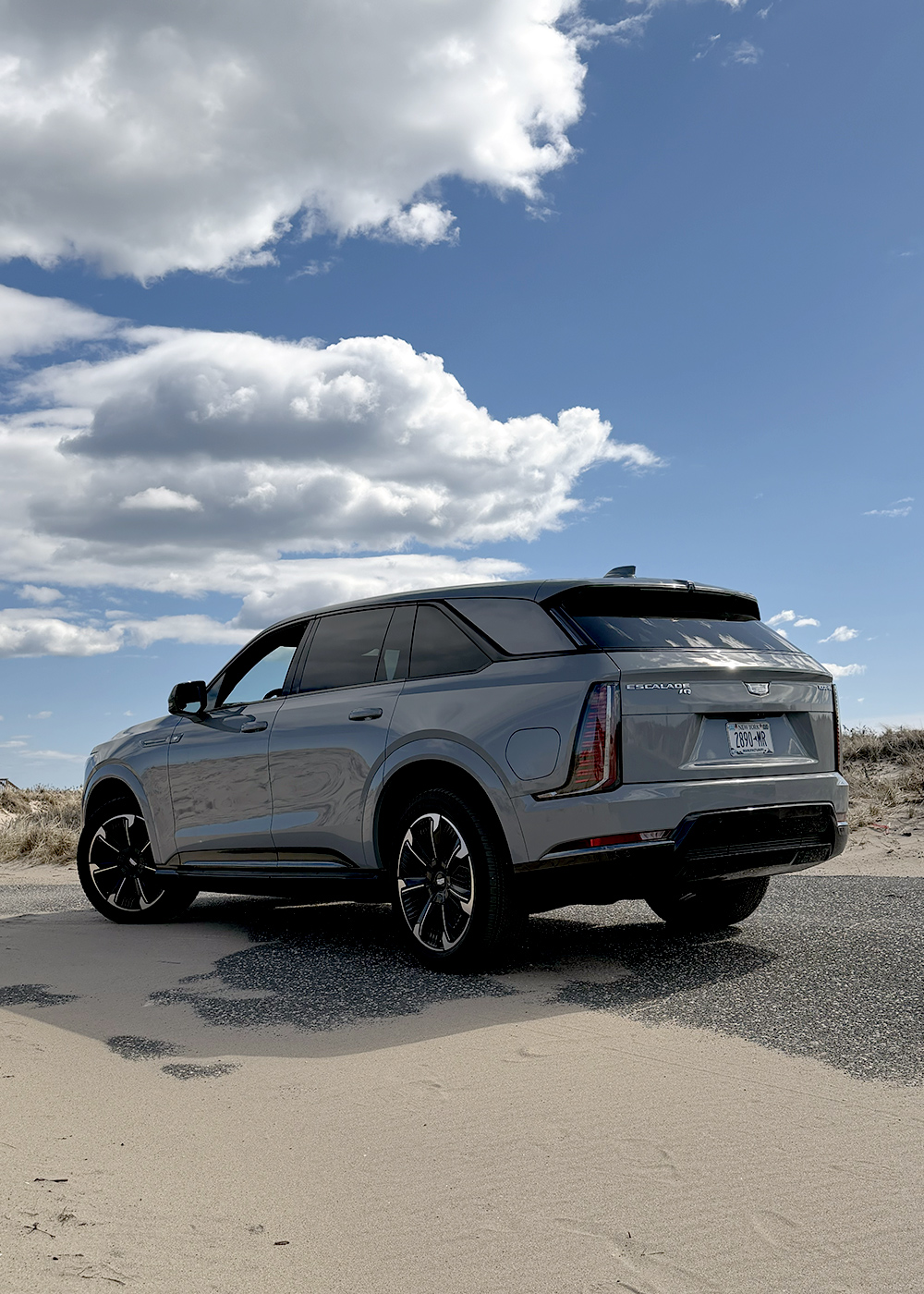 From the wide blue skies of the Hamptons, the Escalade IQ’s exterior reads as both aerodynamic and declarative. A fully illuminated grille and crest announce its arrival with a quiet confidence, while its proportions remain unmistakably Escalade—only now, refined by air and intention.