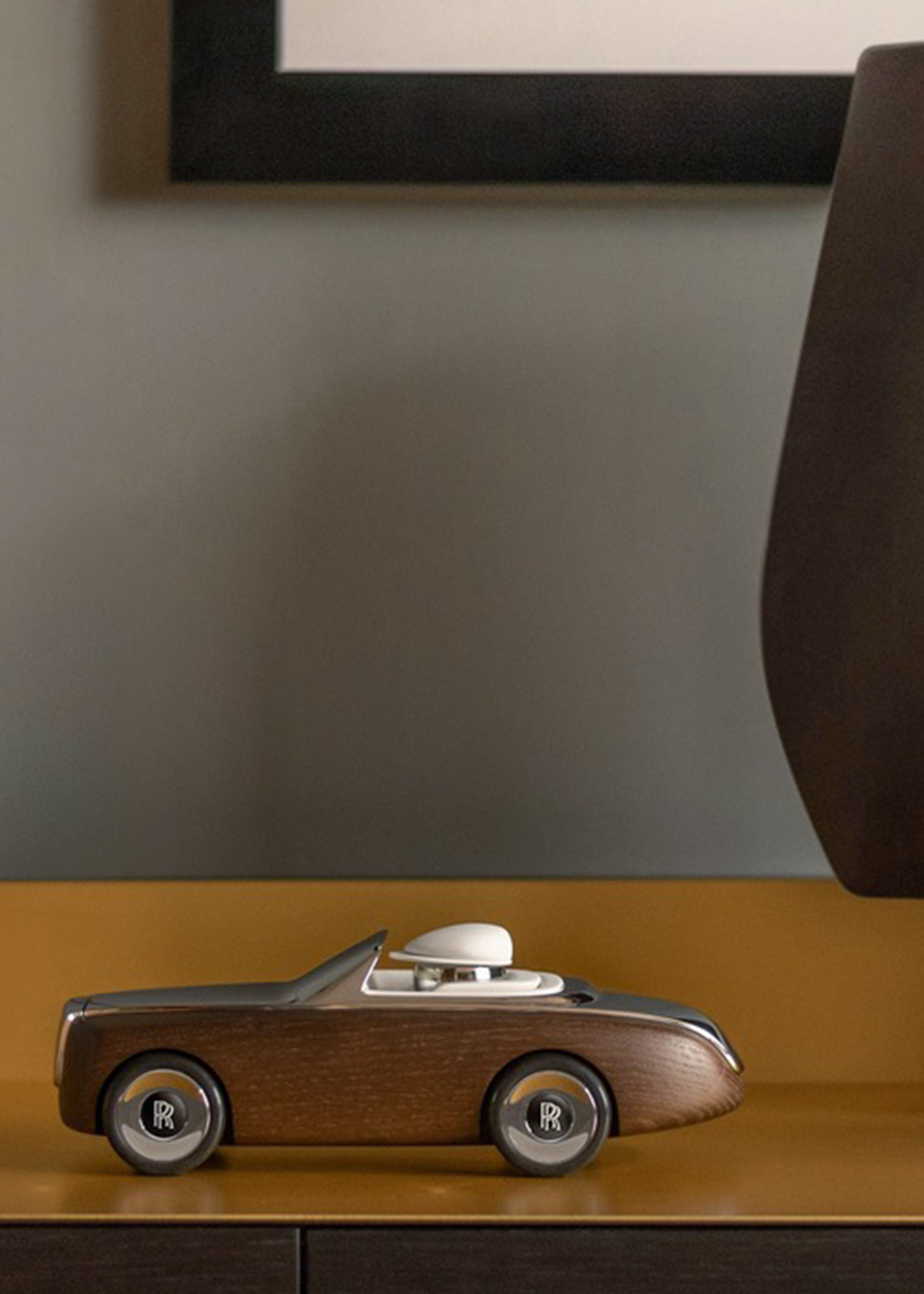 European Oak wood gives the Cameo its sculptural presence, each curve shaped with the same reverence Rolls-Royce lavishes on its full-size legends. Polished aluminum adds a glint of holiday shine, while the Grace White interior details feel almost mischievously opulent at this scale. It is, undeniably, a Rolls-Royce: dignified, immaculate, and perched confidently in the palm of your hand.