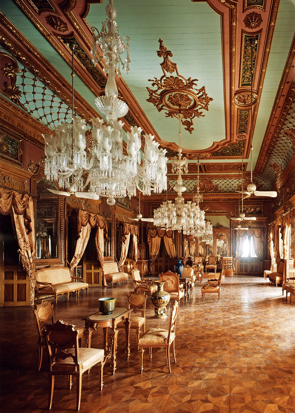 Inside, Princess Esra’s celebrated restoration continues to evolve through new conservation efforts. Hand-painted frescoes, Venetian chandeliers, and gilded ceilings shimmer with renewed vitality. The Jade Room — with its revived Chinoiserie walls and rare curation of jade objets — feels more enchanting than ever. The famed dining hall, with its 101-seat table, remains one of India’s most astonishing ceremonial rooms, now complemented by immersive evening programming that re-creates elements of the Nizam’s courtly traditions, including classical Hindustani performances and stories of state banquets once held beneath its colossal chandeliers.
