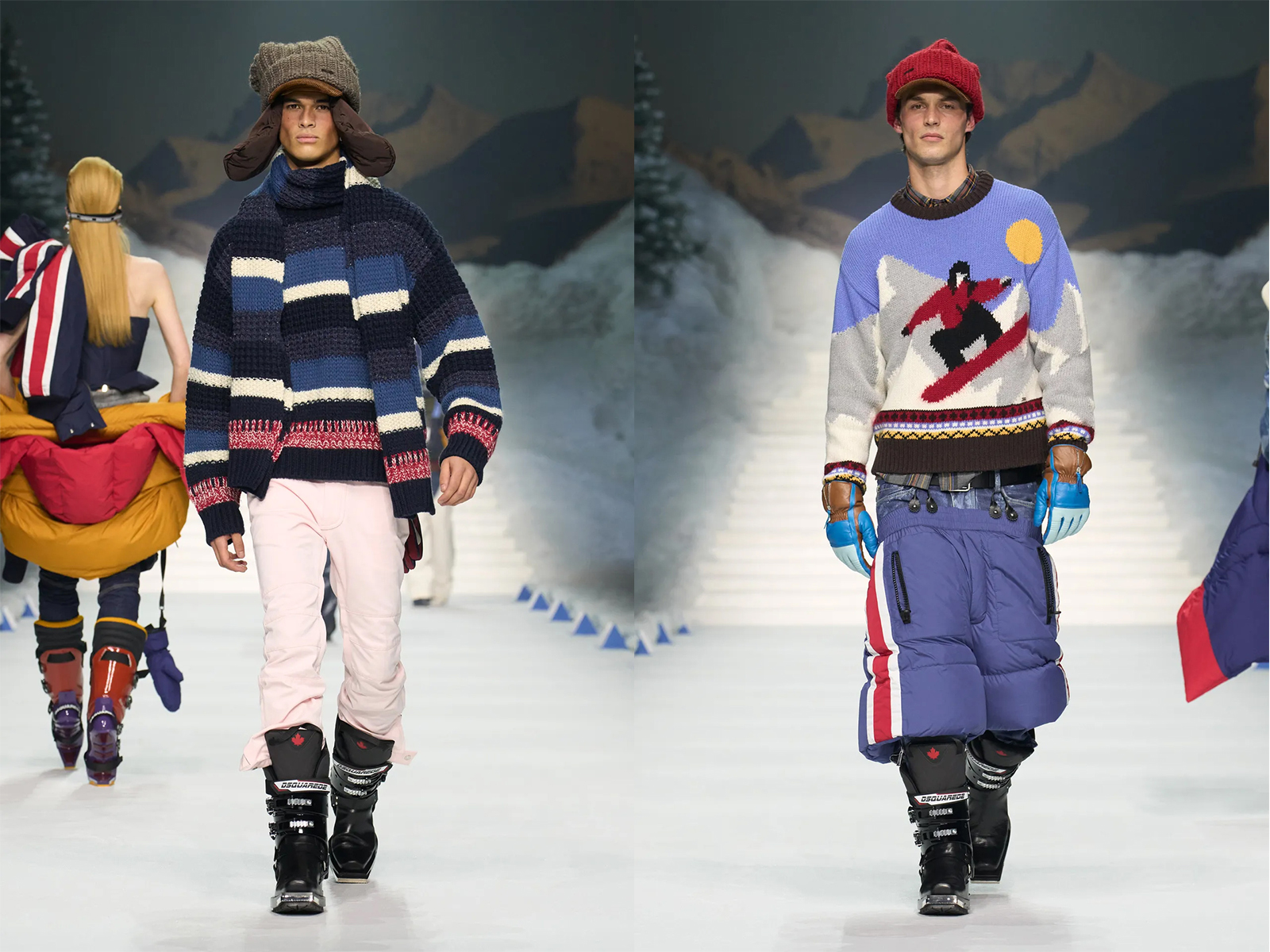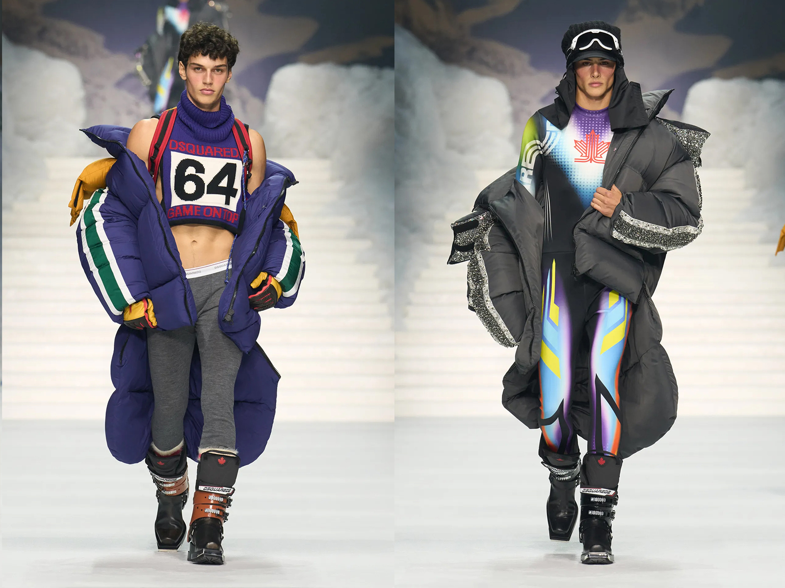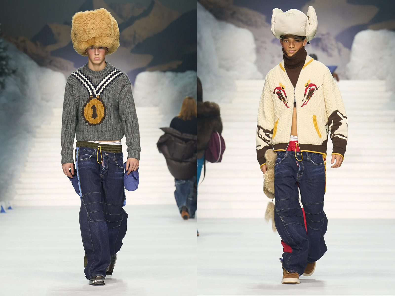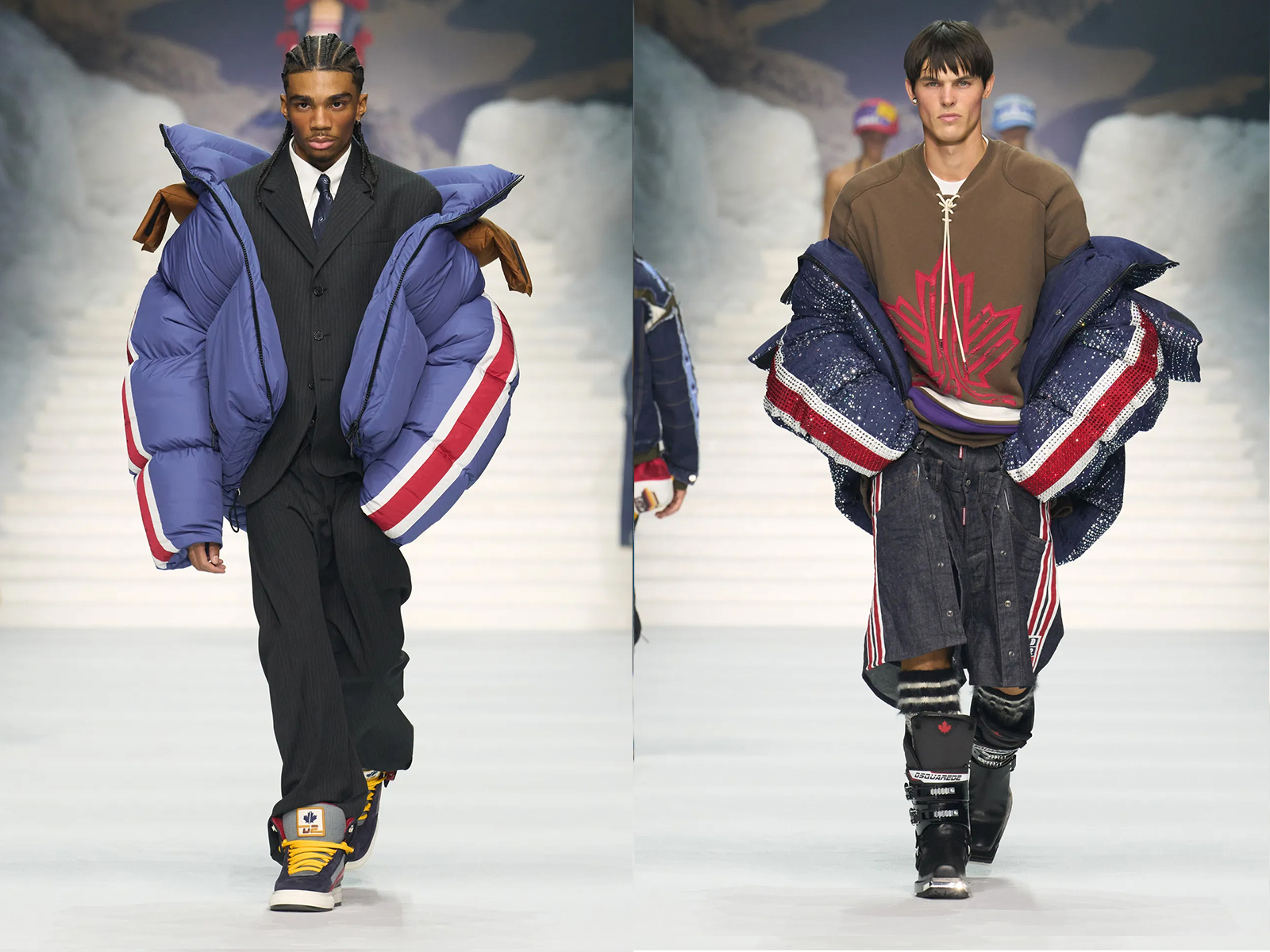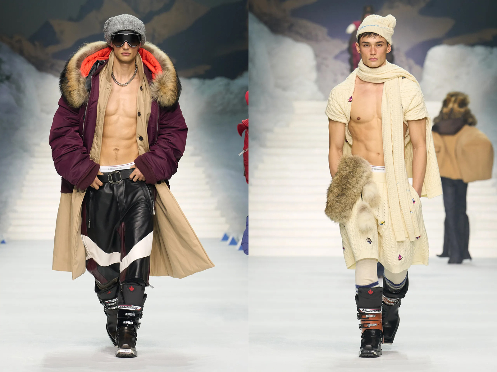 DSquared2 has never believed in subtlety, and at Milan Fashion Week Fall Winter 2026, Dean and Dan Caten leaned fully into their most exuberant instincts. The show, presented as a high-energy co-ed spectacle, wasted no time announcing its intentions. The opening “model” was Hudson Williams, star of the internationally acclaimed series Heated Rivalry, whose appearance set the tone immediately: flirtatious, physical, and entirely in on the joke.