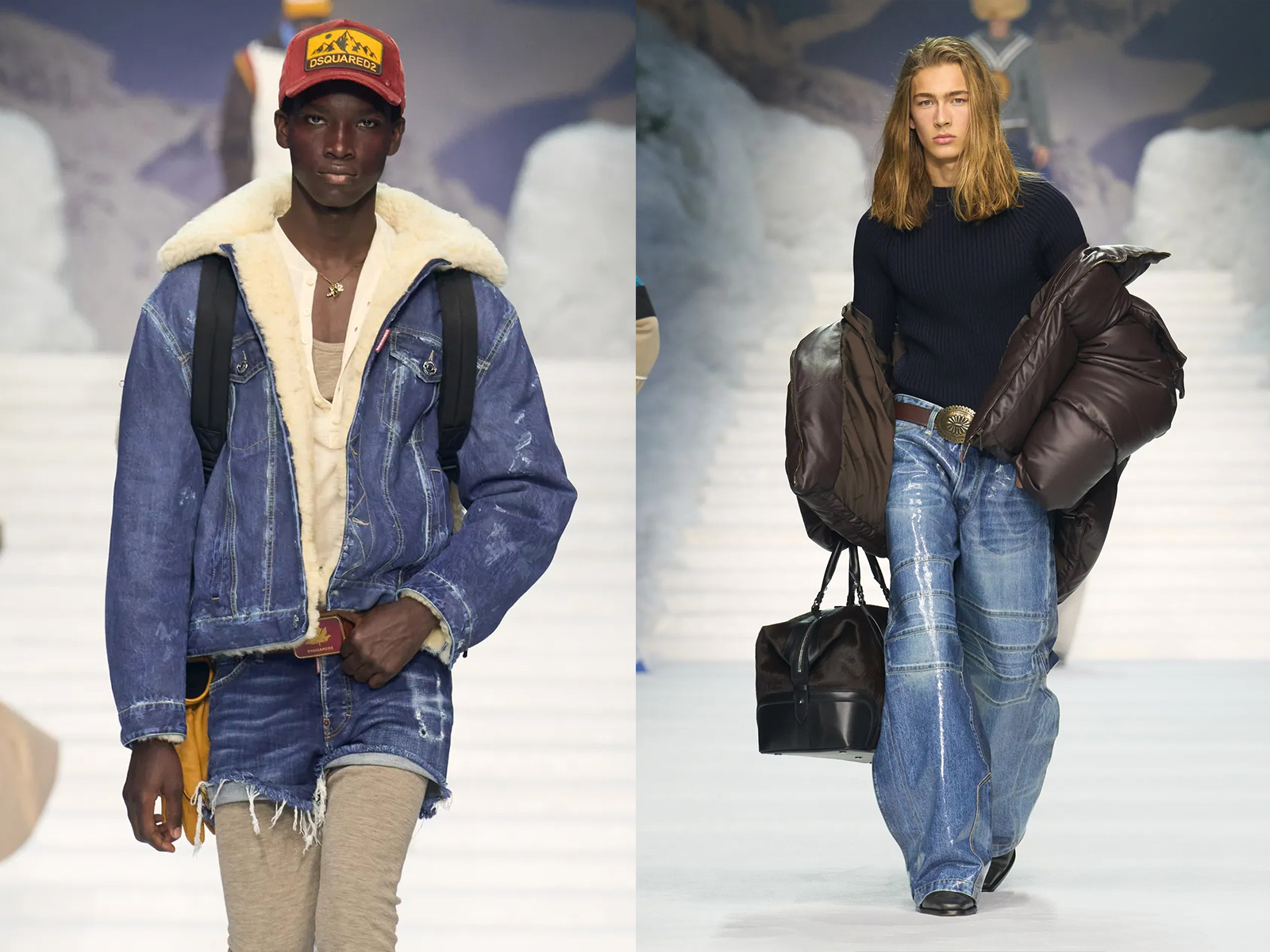 There was humor throughout, but also confidence. The clothes knew exactly what they were doing and who they were for. This was not masculinity under examination — it was masculinity on display, exaggerated, camped up, and thoroughly enjoyed. At Milan Fashion Week, DSquared2 reminded everyone that fashion doesn’t always need restraint. Sometimes it just needs good lighting, a strong body, and the confidence to sparkle. DSquared2.