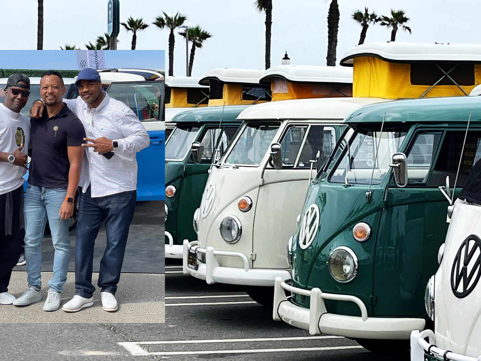 The scene on Huntington Beach tied together past, present, and future, as hundreds of VW Bus owners brought their vans to the beach, recalling a scene from the 1965 movie Beach Blanket Bingo.