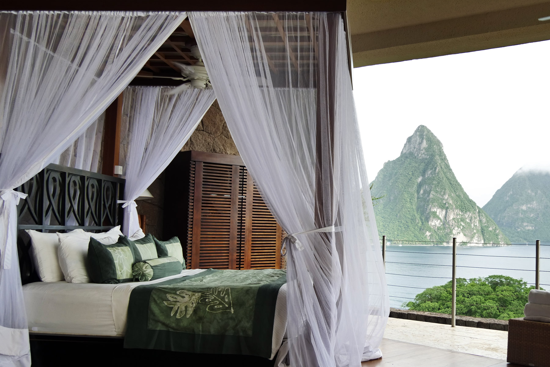 From the infinity pool in the foreground to the view of the Piton, the sanctuaries at Jade Mountain Resort seem infinite.