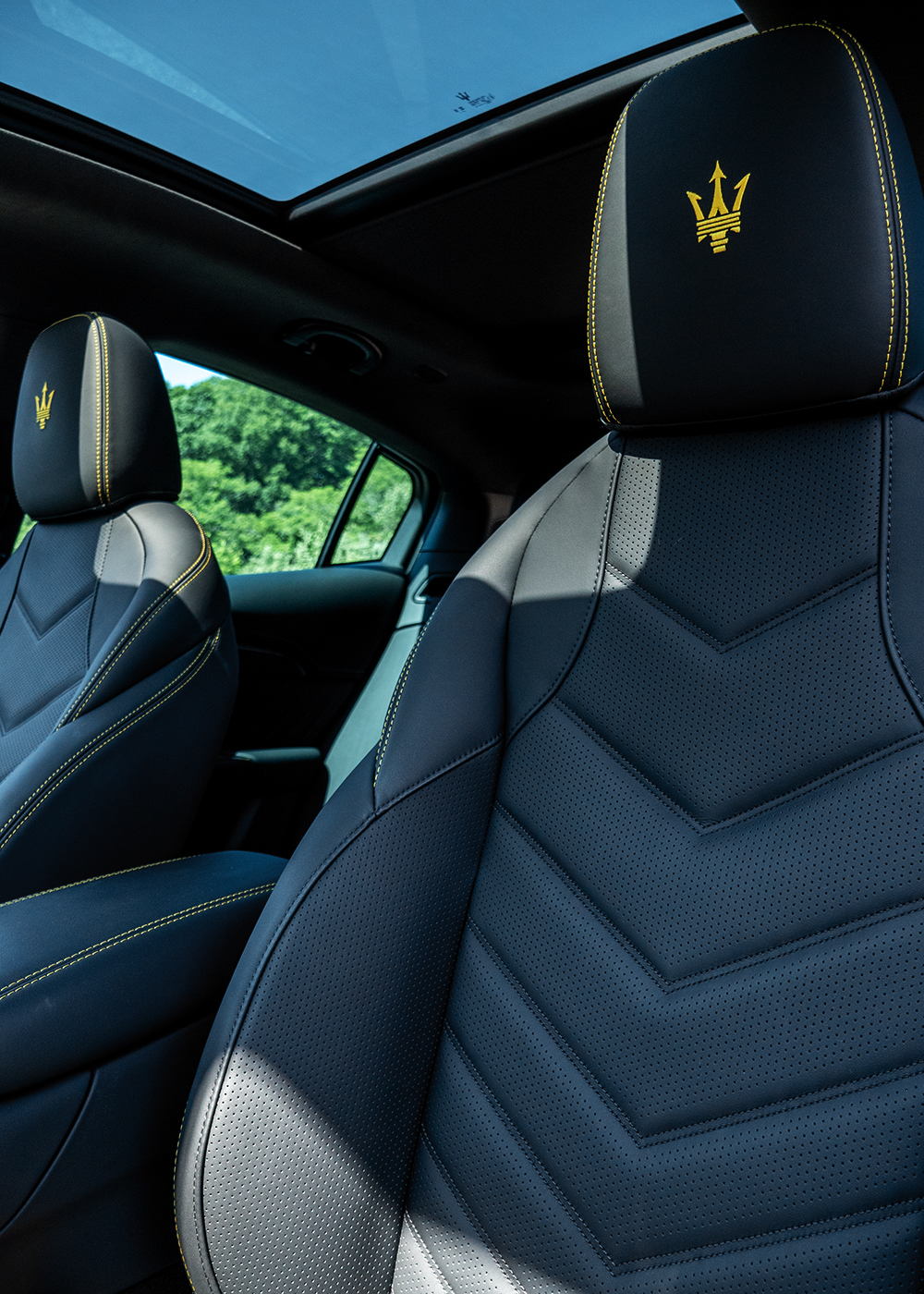Performance in the Grecale Trofeo is not only heard but felt. The Sonus faber 3D sound system—crafted by Italy’s legendary audio artisans—offers a symphony of clarity and depth, with up to 21 speakers enveloping the cabin in rich, immersive sound. Pair that with the unmistakable growl of the V6, and every drive becomes a thrill. Whether navigating coastal roads or the tree-lined lanes of East Hampton, the Grecale adapts to your mood with five configurable drive modes: Comfort, GT, Sport, Corsa, and Off-Road. From serene cruising to high-octane precision, the Grecale delivers a perfect balance of refinement and responsiveness.