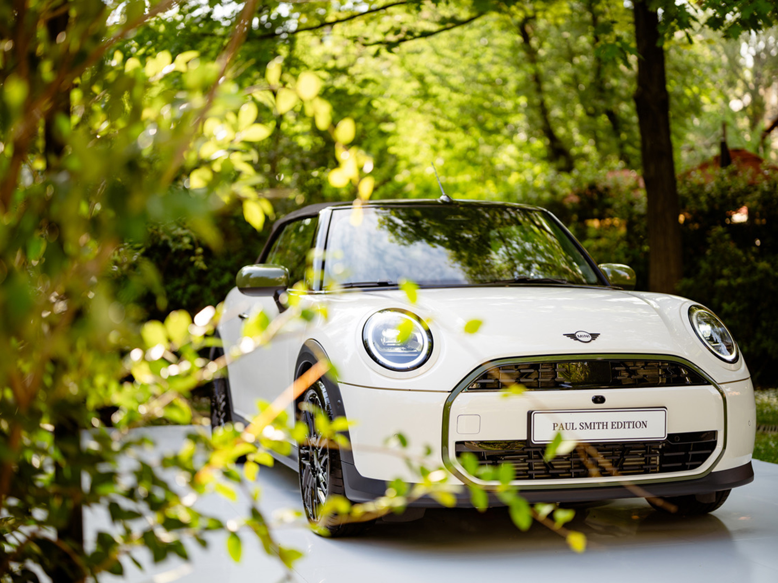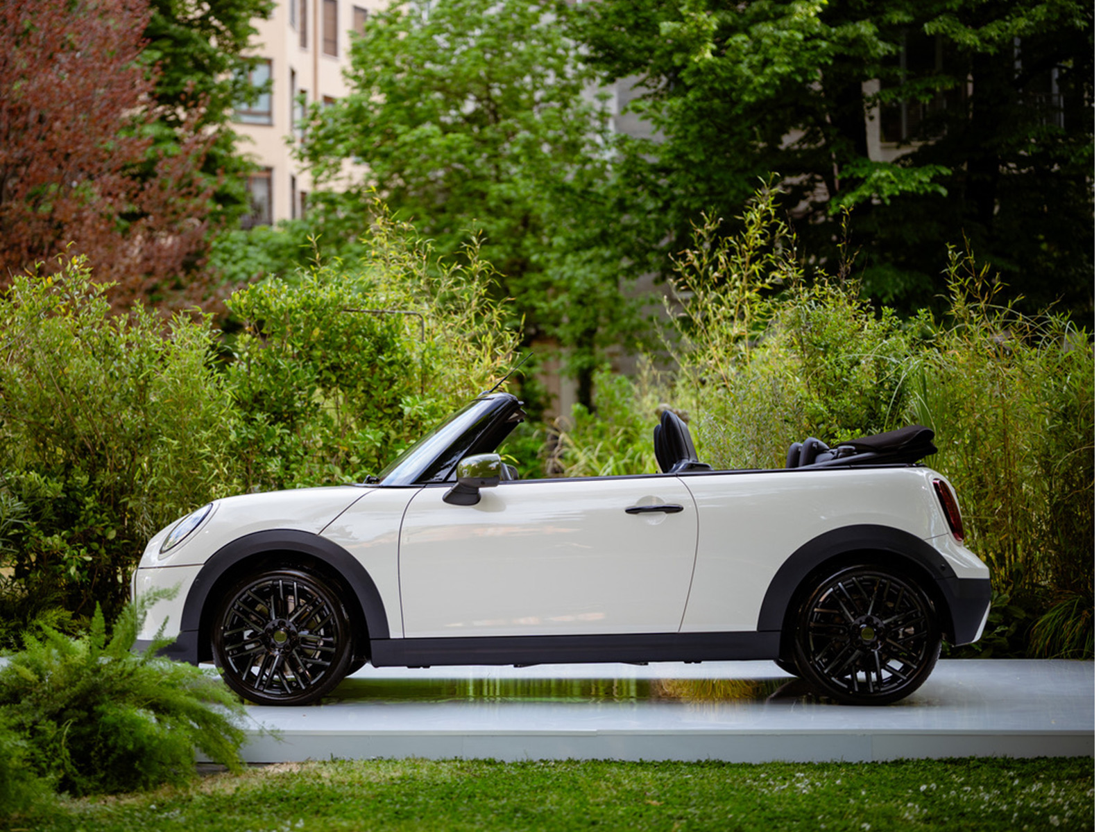 At the center of the installation, almost concealed within the landscape, sits the MINI Cooper Convertible Paul Smith Edition. Its presence feels less like a reveal and more like a quiet encounter. The design reflects Smith’s signature sensibility—playful, precise, and slightly unexpected—while maintaining MINI’s distinct identity.