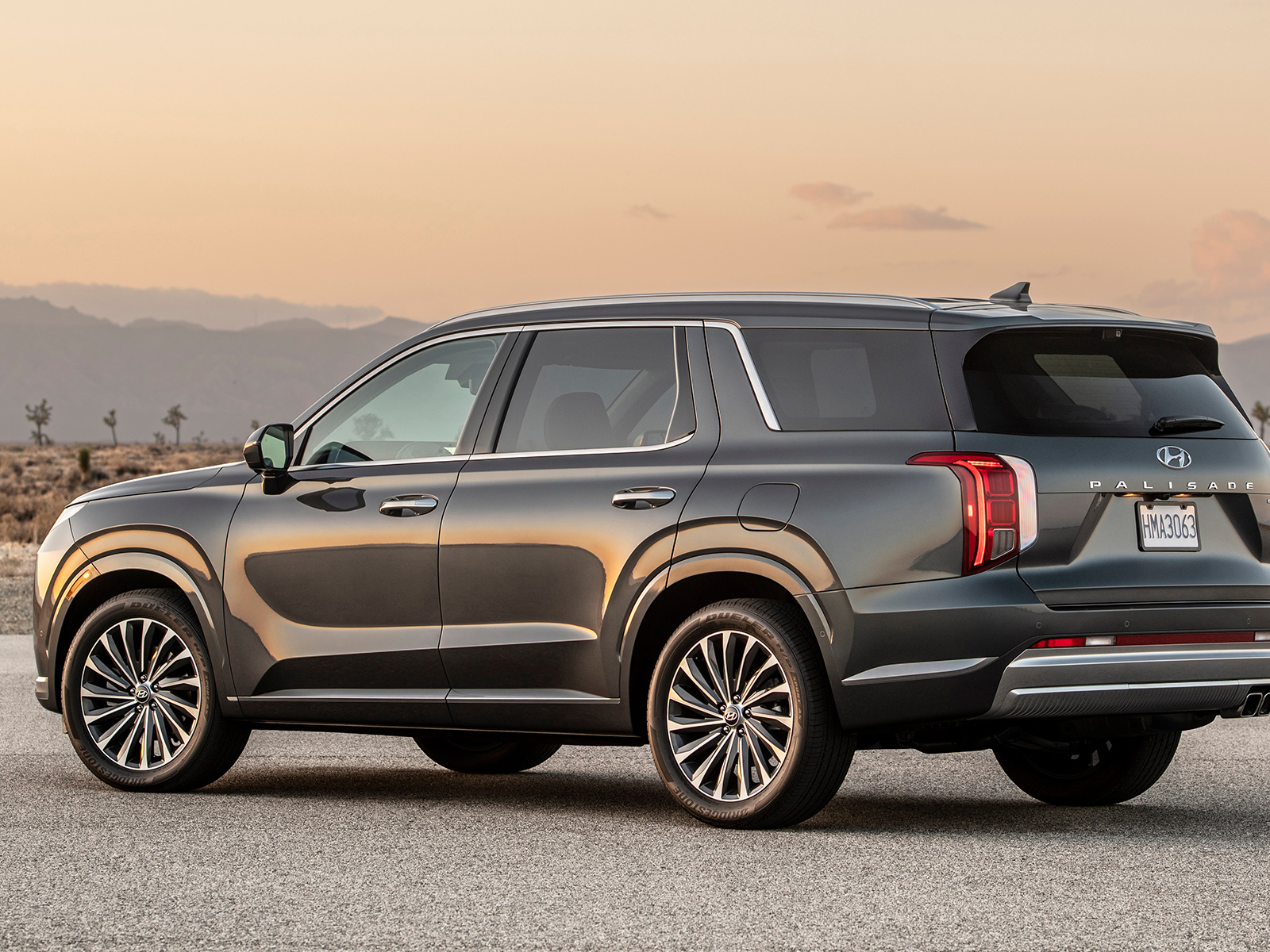 Palisade is a true luxury SUV; without the steep price of luxury. At the fore, the fab cascading grille form outlines rugged parametric shield elements for a premium appearance. The new forward lighting signature features vertically-connected LED composite lights that frame the grille creating a sharp-edged, technical appeal. New, 20-inch multi-spoke alloy wheels fill the wheel openings for a premium flagship presence. New brake detailing on the lower front skid plate element further conveys a rugged demeanor. The powerfully extended hood profile creates an impressive road presence, while bold C-pillars and panoramic side glass graphics illuminate the generous third-row spaciousness. The rear view emphasizes a wide, stable stance via vertical LED tail lamps and lower fascia skid plate details.