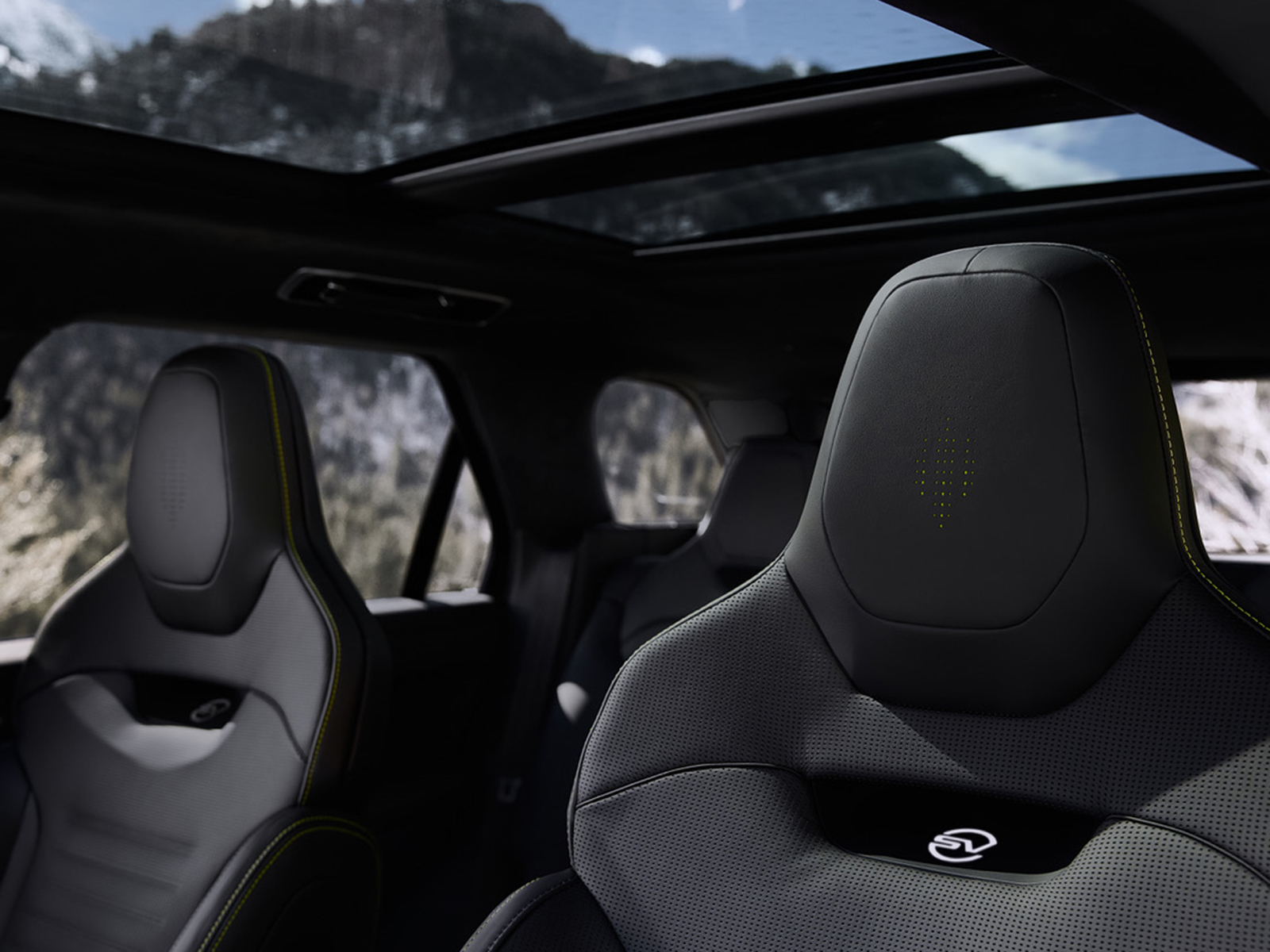 Created as an ultra-limited expression of the Sport SV, the Winter Dusk edition takes its inspiration from the deep indigo tones that settle over Park City at the end of a winter day. The exterior is finished in Bespoke Indigo Blue Satin, contrasted by a Narvik Black roof and mirror caps and complemented by a Graphite Atlas finish pack that sharpens the vehicle’s sculptural lines.