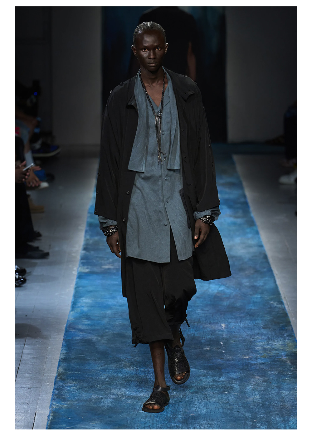 Yohji Yamamoto’s Spring 2026 menswear collection does not announce itself as a revolution. It drifts in quietly, almost stubbornly, as if insisting that the future will arrive whether we dress for it or not. Rather than chasing novelty, Yamamoto exaggerates his own language—unconstruction pushed further apart, layers loosened to the point of suggestion, garments that appear temporarily assembled, as if ready to be taken off and rearranged somewhere else.